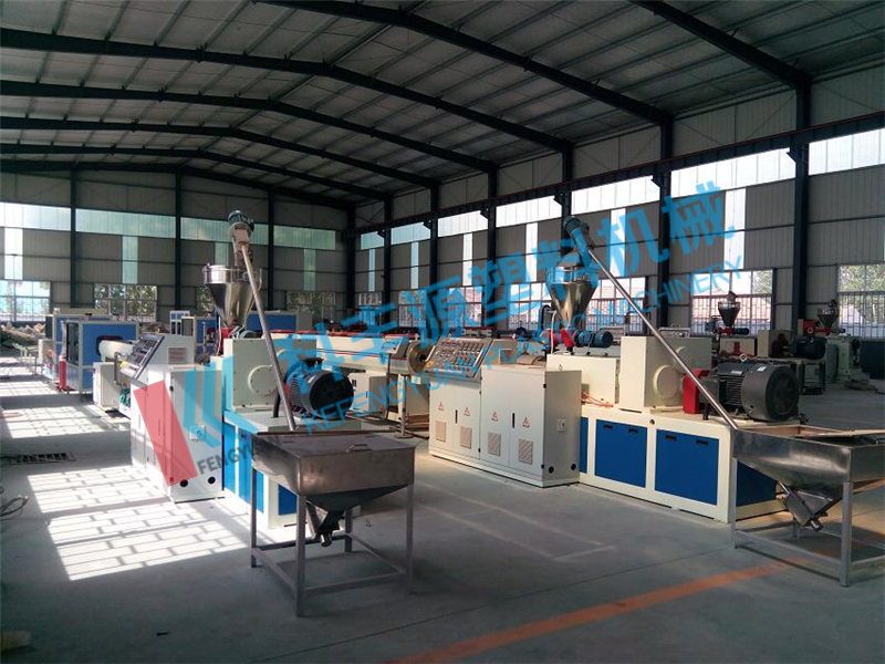 PVC管材設(shè)備主要用于生產(chǎn)農(nóng)用給排水、建筑給排水、線纜敷設(shè)等方面和各種管徑、壁厚的塑料PVC管材。該機組由錐形(平行)雙螺桿擠出機、真空定型臺、牽引機、切割機、翻料架等組成。螺桿擠出機及牽引機采用進口交流變頻調(diào)速裝置,真空泵及牽引電機均采用優(yōu)質(zhì)產(chǎn)品。牽引機有二爪、三爪、四爪、六爪、八爪等牽引方式。可選用鋸片切割式或行星切割式,另帶計長儀及增厚裝置,機組性能可靠、生產(chǎn)效率高。行星切割機采用全自動電腦數(shù)控,具有操作方便,性能可靠等優(yōu)點,達到國際領(lǐng)先水平。